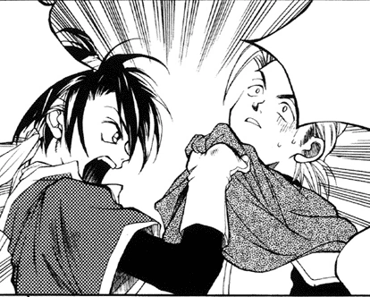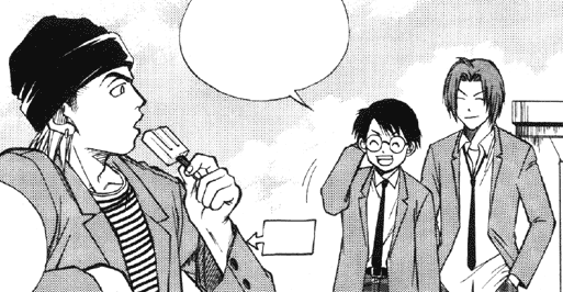 As they fight, Michelle notes that they are a Swordsman (Roto), Warrior (Boromir), and Mage (Ah-Dol). Row adds that it's a common party grouping since they can cover each other's weaknesses, but that they are not anything special individually. As they reach a split on the tunnels, a Minotaur approaches, the same monster that killed Row and Michelle. It manages to land a blow on Ah-Dol and breaks Roto's sword when he tries to attack. Row thinks they are defeated and resigns himself to attack the monster, despite their earlier objections but Boromir stops him. Row starts to object but Boromir confidently confirms they are not defeated and casts Cure on Ah-Dol allowing him to regain his strength and use Striking and continually punches the Minotaur. Michelle explains that Cure is an advanced healing spell and Row realizes Ah-Dol is a Monk, both amazed at how strong they are. Roto then chuckles evilly and begins casting a doubled Fireball. Row is shocked that he is a Mage. Boromir notices Roto is going crazy and tries to get Ah-Dol to stop him, but is angrily rebuffed. Before he can cast the spell, Roto is once again frozen and disconnected from the net. He finds his mother, smoking, and twirling the end of the computer power cable as his sister is sleeping on the keyboard. She deduces he was up all night gaming and tells him to wake up his sister and to go eat something. Roto wails about her turning off the power.